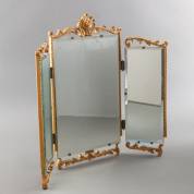Driedelige gefacetteerde spiegel in goudkleurige lijst bekroond door bloemenmand, 20e eeuw, 56 × 64,5 cm