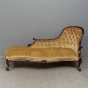 Mahonie chaise longue bekleed met olijfgroen velours en gecapitonneerde rugleuning, midden 19e eeuw -gebruikssporen-, 86 × 186 × 90 cm