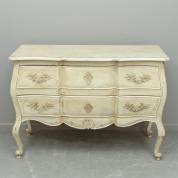 Lichtgroengelakte commode, Louis Quinze-stijl, modern -speling in verbinding linksonder lade-, 83 × 120 × 54 cm