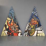 Ludo Winkelman (hedendaags), 'Stralen van overvloed', gemengde techniek op doek, verso gesigneerd en gedateerd, met certificaat van kunstenaar, 138 × 198 × 198 per stuk