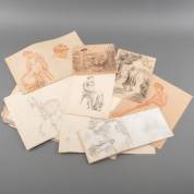 Verzameling schetsen, voornamelijk figuren, sommige gesigneerd Netty Lensvelt (1882-1976) -defecten-