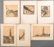 Germ de Jong (1886-1967), zeven litho's: de Cuneratoren te Rhenen en twee dorpsgezichten, mogelijk ook Rhenen, alle gemonogrammeerd in de druk, tevens in potlood gesigneerd en gedateerd 1916, grootste 32 × 20 cm