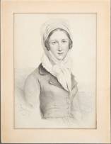 Christiaan Beerstecher (1793-1863), portret van dame met doek om haar hoofd, aquarel op papier, l.o. gesigneerd en gedateerd 1835 te Zeijst, naar portret van Henri Grévedon -vlekjes, wat vergeeld-, 31,5 × 21,5 cm