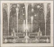 Gravure: 'Afbeelding van 't Vuurwerk, afgestooken in 's-Gravenhage, den 13 Juny 1749, ter occasie van den Aakensche Vrede', Jan Caspar Philips naar ontwerp Leonard Stephan baron von Creutznach, uitg. Anthoni de Groot en Zoonen, Den Haag, 1750 -roestvlekjes, scheurtjes in de marges, één gefixeerde scheur-, 41 × 58
