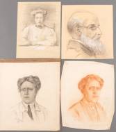 Vier portrettekeningen, waarvan drie van dezelfde vrouw, alle krijt op papier, twee gesigneerd S. Bucher, een [?] Labouchere, en één onduidelijk gesigneerd, alle begin 20e eeuw -vlekjes en kleine defecten-, grootste 36 × 32 cm