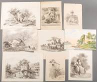 Negen diverse tekeningen, alle 19e eeuw, grotendeels gesigneerd [C.]J. van Breugel of Van Bruegel, afmetingen grootste 34 × 44 cm