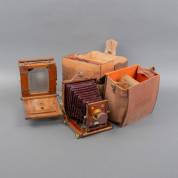 Twee plaatcamera's: een uitvoering Watson & Sons, de ander onbekend, beide in draagtassen