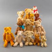 Verzameling oude mohair teddybeertjes, diverse afmetingen en leeftijden -bespeeld-, 20 cm