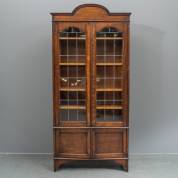 Eiken vitrinekast met glas-in-loodramen, tweede helft 20e eeuw, 187 × 93 × 37 cm