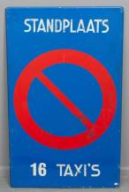 Metalen verkeersbord: 'Standplaats 16 Taxi's', 20e eeuw -gebruikssporen-, 103 × 63 cm