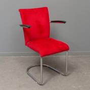 Chromen buisframe fauteuil met rode ribfluwelen bekleding, model 7018, ontwerp Gebroeders de Wit, vermoedelijk uitvoering Dutch Originals, 20e eeuw -gebruikssporen-, 87 × 58 × 50 cm