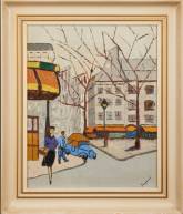 Hollandse School: hoek van de Oudegracht en de Vinkenburgstraat in Utrecht, olieverf op doek, gesigneerd Boogaard, 50 × 40 cm