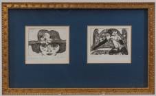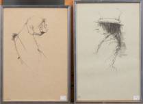 Dirkje Kuik (1929-2008), twee litho's: figuur met hoed en man met snor, beide l.o. gemonogrammeerd in de druk -wat vergeeld-, 28,5 × 19 cm