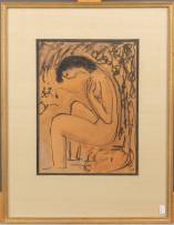 Inkttekening: badende vrouw, r.o. onduidelijk gesigneerd en gedateerd, 29 × 21 cm