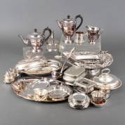 Divers verzilverd, waaronder: koffie- en theeservies, bedekte schalen en opengewerkte mand met druivendecor