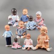 Drie kunststof poppen, gemerkt Käthe Kruse, en zes celluloid poppen, waarvan één gemerkt Schildpad, 30 cm