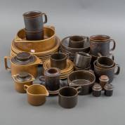 Bruin aardewerk serviesgedeelte, diverse uitvoeringen, waaronder Celtic Limerick en Arabia, bestaande uit: negen dinerborden, negen kommetjes, en divers drink- en dienservies