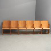 Beukenhouten bank met zes klapstoelen, 298 × 83 × 55 cm