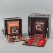 Twee balgcamera's: 5 × 7 Korona, en Korona III A, beide uitvoering Gundlach Optical Co., Rochester, begin 20e eeuw