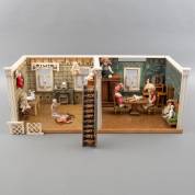 Tweekamer poppenhuis met diverse meubelen, onderdelen en porseleinen popjes, 19e/20e eeuw -gebruikssporen en defecten-, 30 × 84 × 37 cm