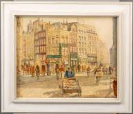 Arnout van Gilst (1898-1981), paardenkar op de kade, olieverf op doek, r.o. gesigneerd -doek hangt niet op spanning, beginnend scheurtje-, 50 × 70 cm