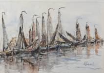 Andreas Schotel (1896-1984), schepen in de haven van Volendam, aquarel en gouache op papier, r.o. gesigneerd, 43 × 59 cm