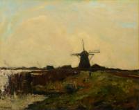 Piet van Wijngaerdt (1873-1964), 'September middag bij Koene molen', olieverf op doek, l.o. gesigneerd -inschilderingen langs marges, vernis wat vergeeld, verfverlies-, 54 × 67 cm