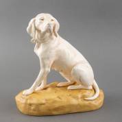 Porseleinen beeld: jachthond, uitvoering Royal Dux, Tsjechoslowakije, jaren '50 -kleine barst van circa 1 cm op het dijbeen-, hoogte 29 cm