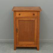 Eiken ééndeurs kastje met lade, jaren '30, -blad met krimpscheur, kringen en krassen in het blad, sleutel bijgevoegd-, 90 × 61 × 40 cm