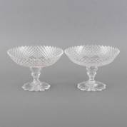 Paar kristallen tazza's met ruitslijpsel op stervormige voet, 19e eeuw -één tazza met twee chips langs rand-, 15 × Ø 22 cm