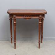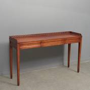 Mahonie sidetable met galerijrand en lade, staand op taps toelopende poten, 81 × 138 × 39 cm