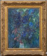 Schilderij: bloemstilleven, olieverf op doek, r.o. onduidelijk gesigneerd -verfverlies, gecraqueleerd in het midden-, 45 × 35 cm