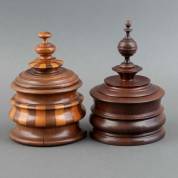 Twee gedraaid houten tabakspotten waarvan één met gekuipte buik, beide 19e eeuw, grootste 23 × Ø 14,8 cm