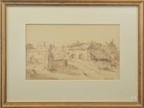 Theodoor Goedvriend (1879-1969), dorpsgezicht, krijt en gewassen inkt op papier, r.o. gesigneerd, 19 × 33 cm