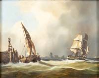 Hollandse School: schepen in woelig weer bij Dordrecht, olieverf op paneel, r.o. onduidelijk gesigneerd Anton Lam?, 20e eeuw -beetje vuil-, 29,5 × 24,5 cm