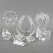 Acht diverse glazen voorwerpen, waaronder uitvoering Leerdam, Lalique en Baccarat -het Lalique vogelbakje met paar kleine chips-, hoogte Baccarat vaas 18 cm