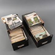 Nederland: circa 1150 prentbriefkaarten. 1900-1960 (de meeste vóór 1940). Met grote nadruk op kastelen, buitenhuizen, villa's, oude boerderijen, buitengebieden, parken, vijvers en andere waterpartijen, etc. Uit de verzameling van de familie Copijn, Groenekan. Niet gesorteerd