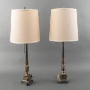 Paar tafellampen met bronskleurige voet en lichtgele kap, 87 × Ø 33 cm