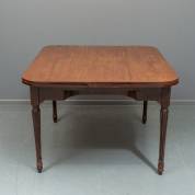 Rechthoekige mahoniegefineerde uitschuiftafel op gecanneleerde poten met twee lades, Louis Seize-stijl, 19e eeuw -gebruikssporen, samengesteld-, 76 × 117 × 107 cm