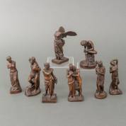 Acht bronzen reproducties van beeldjes uit de klassieke oudheid, hoogste 14 cm