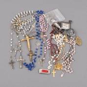 Diverse rozenkransen en religieuze hangers, waaronder zilver
