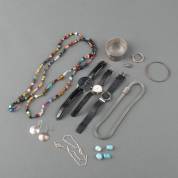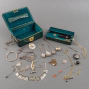 Diverse bijouterieën, waaronder zilver, en drie horloges