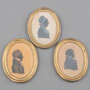 Drie ovale silhouetportretjes in koperen lijstjes, begin 19e eeuw -wat verbruind en één zonder glas-, maat alle circa 13 × 10 cm