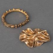 Messing armband en broche, beide met organisch decor, broche gemerkt P & M, Paris, binnenmaat armband 55 mm, broche 7,5 cm