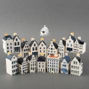 15 KLM-huisjes -één open met stikker: empty due to custom regulations-, en asbakje, daarbij: huisje 'De Zonnewijser, Amsterdam - Kempen & Co', uitvoering Royal Goedewaagen, Delft