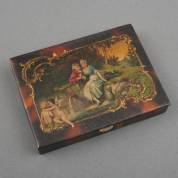 Gelakt houten vernis martin dekseldoosje met decor van verliefd paar, 2 × 13,5 × 10 cm