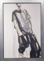 Marjolein van Haasteren (1967), lopende figuur, het T-shirt met opschrift 'Run for you life', gemengde techniek op board, niet gesigneerd, 110 × 75 cm