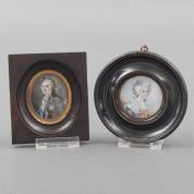 Twee miniatuurportretjes: koning Louis Seize, en dame in 18e-eeuwse stijl, beide 19e eeuw, damesportret inclusief lijst Ø 13,2 cm