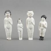 Vier Japans porseleinen 'Frozen Charlotte' poppen, eind 19e eeuw -gebruikssporen-, 16 cm