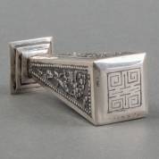 Zilveren blanco cachet met chinoiseriedecors, afgezet met parelranden, Vietnam, 20e eeuw, hoogte 5,5 cm